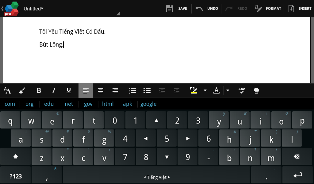 CHIA SẺ [HOT] Đã có thể gõ tiếng Việt có dấu trên PlayBook (app sideload, tạm thời các app native chưa đc)