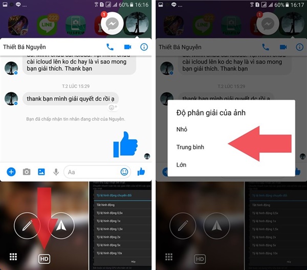Chia sẻ ảnh trên Messenger đã quá phổ biến và được người dùng sử dụng thường xuyên, nhưng bạn đã biết cách gửi ảnh chất lượng cao qua Messenger chưa? Mới đây, Facebook đã giúp người dùng tiếp cận điều đó một cách đơn giản hơn thông qua bản cập nhật mới nhất. Với bản cập nhật này, người dùng được bổ sung thêm tính năng chọn chất lượng ảnh. Tức là trước khi gửi ảnh cho bạn bè, bạn có thể tùy chọn độ phân giải hình ảnh (lớn, trung bình, nhỏ). Tính năng này được thiết kế khá giống như trình chia sẻ ảnh của ứng dụng nhắn tin Zalo, bạn có thể tùy chỉnh chất lượng ảnh ngay trên khung chat mà không cần phải thiết lập rờm rà. Hướng dẫn sử dụng tính năng "tùy chọn chất lượng ảnh" Bước 1: Khởi động ứng dụng Facebook Messenger > Tại khung trò chuyện bạn nhấn vào biểu tượng "chia sẻ ảnh" > Chọn ảnh cần chia sẻ. Bước 2: Tại của sổ chọn ảnh, bạn nhấn vào biểu tượng HD > Tiếp đó lựa chọn chất lượng ảnh tương ứng, có 3 mức như sau: Cao, trung bình, thấp. *Lưu ý: Tính năng này được cập nhật tự động lần lượt cho từng tài khoản, nên nếu chưa có bạn có thể thử lại sau đó. Chúc các bạn thao tác thành công! TGDD