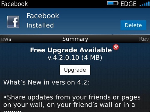 UPDATE FaceBook cập nhật v4.3.0.12 cho BlackBerry OS trên BlackBerry World